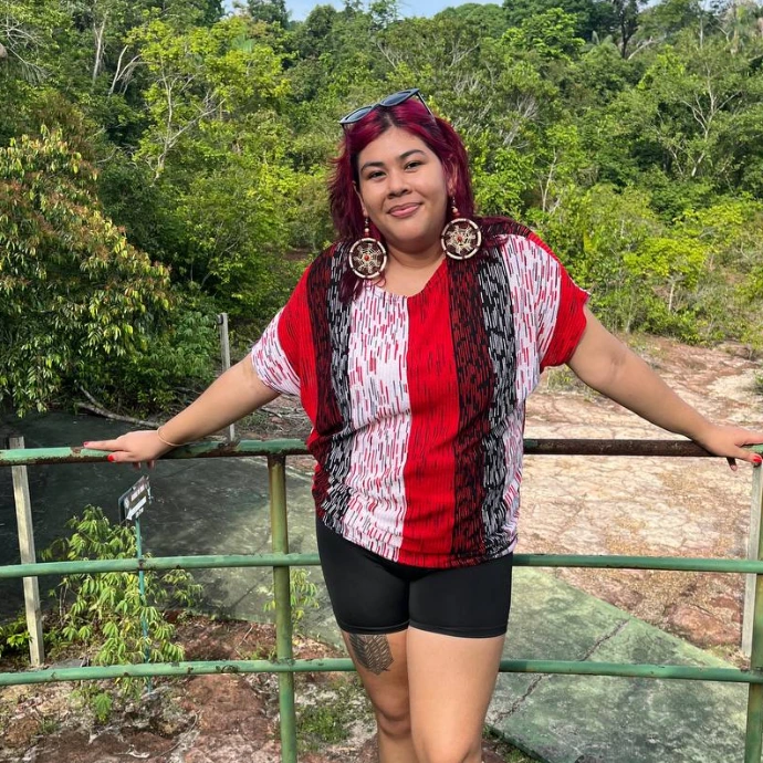Mulher indígena do povo Baré e LGBTQ, formada em Geografia. Professora em comunidade rural no Novo Airão (AM) e educadora social no Coletivo Pererê, fortalece a resistência e a identidade cultural da periferia urbana, promovendo a valorização das raízes indígenas e amazônicas e a formação de crianças e jovens.