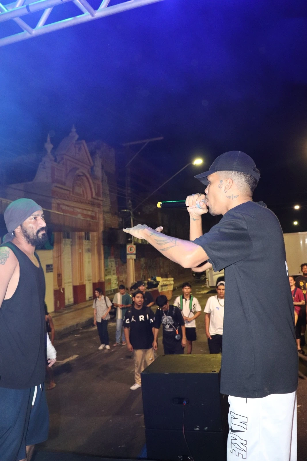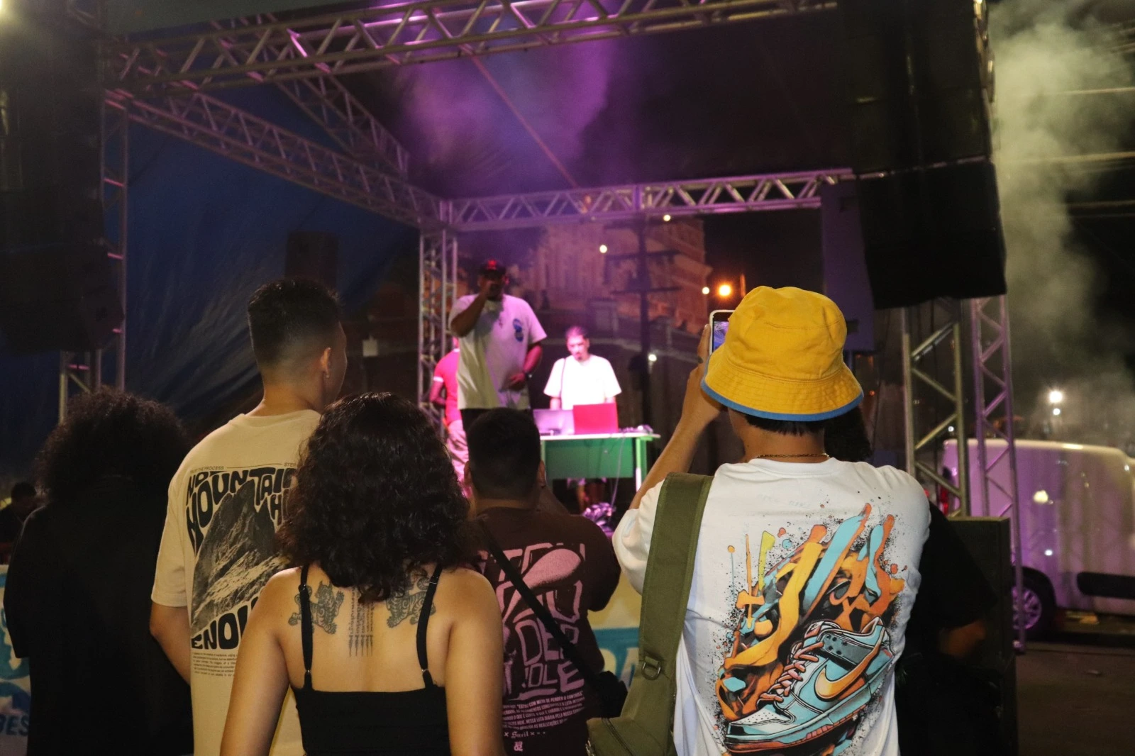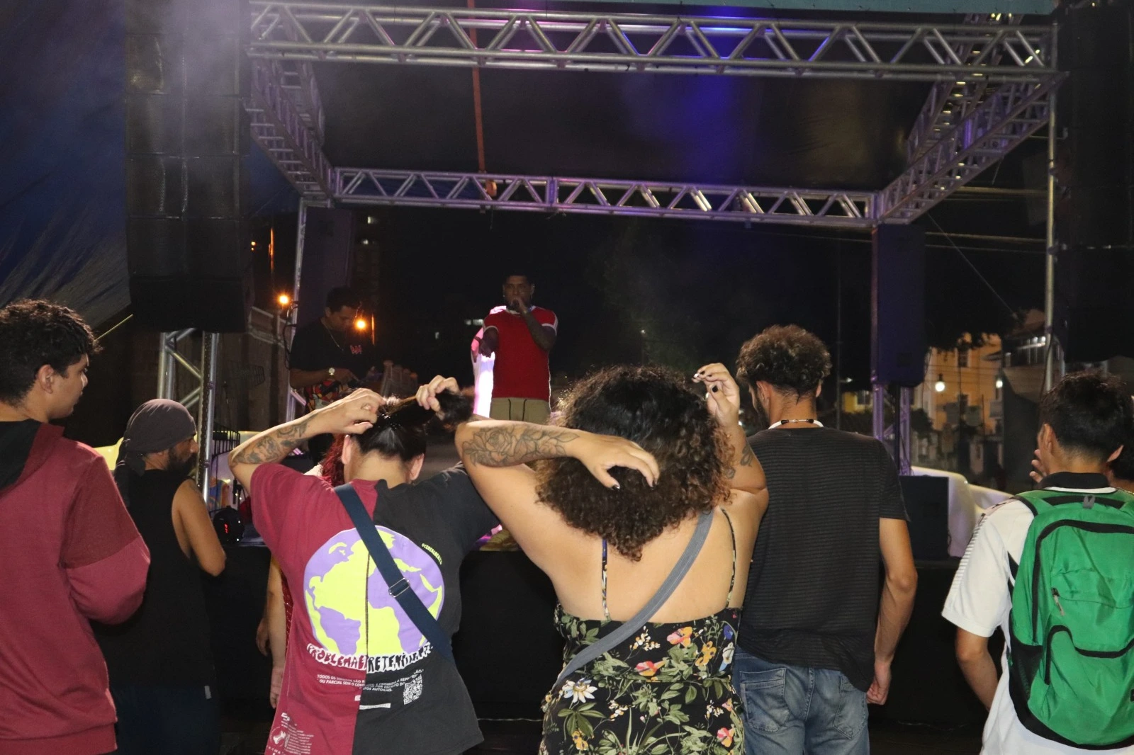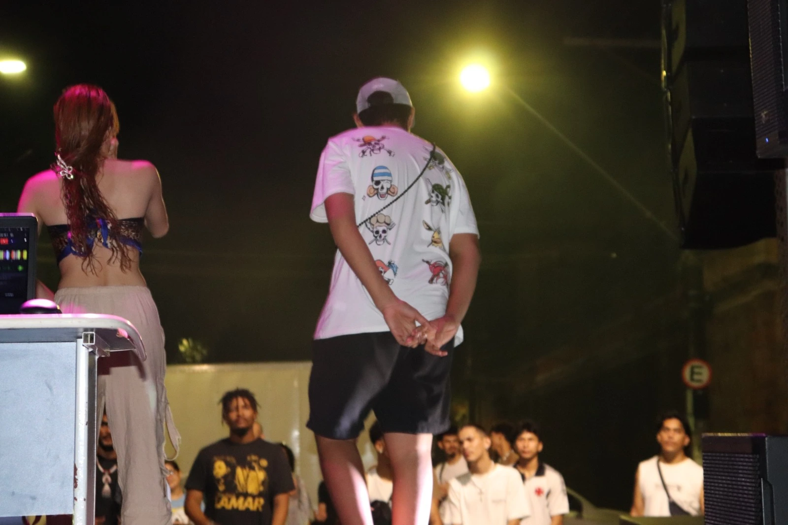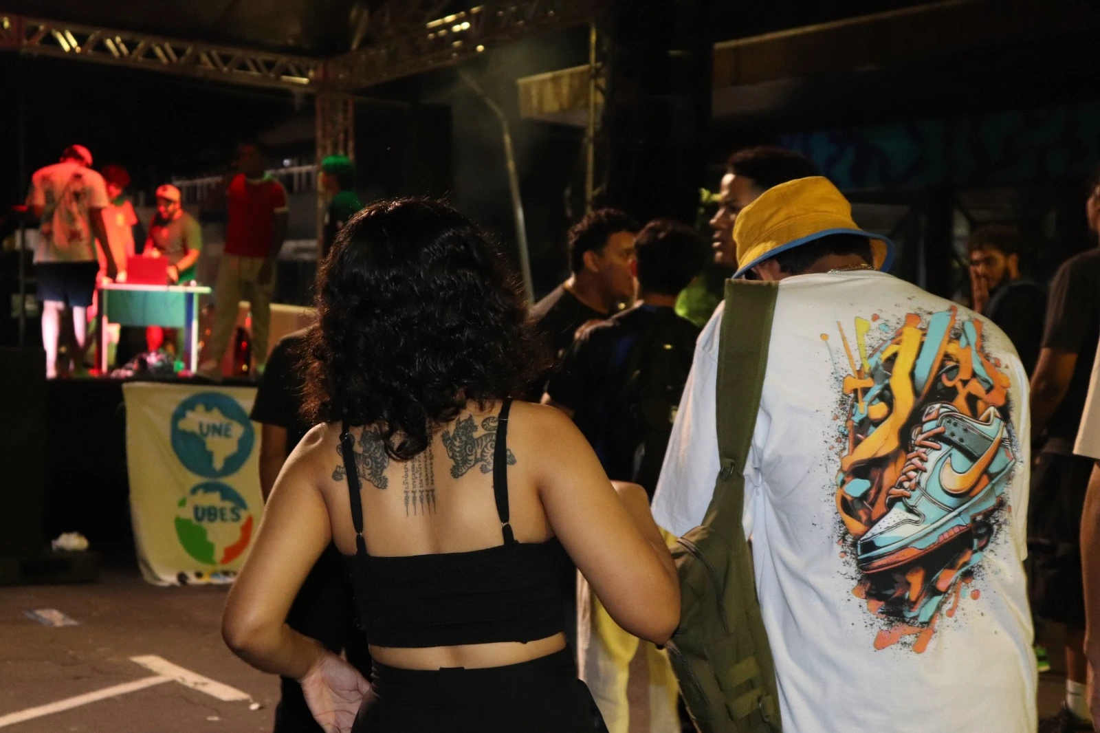 No comando do som, os DJs LF, Rani, Maggah, Guz, Markito e Mano Fé garantiram a batida. Nauj Jama trouxe seu flow cheio de ginga e palavra, com LF na mesa. Sessão da West subiu no palco, o pessoal da Batalha do Passarinho movimentou a roda de rima e Leleo comandou o slam. A noite também contou com os mestres de cerimônia G13 e MC Bety e com o pocket show de Isa MC. Entre uma música e outra, intervenções políticas e ações de sustentabilidade reforçaram nosso compromisso com a justiça climática e social.