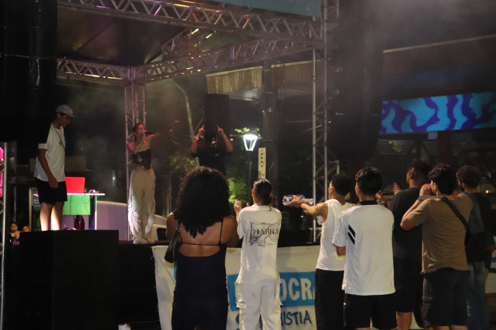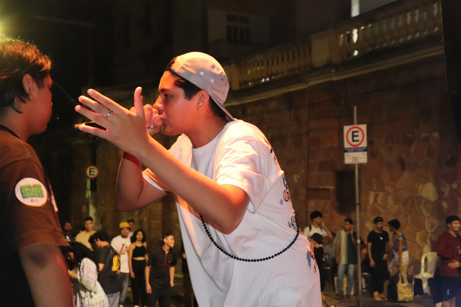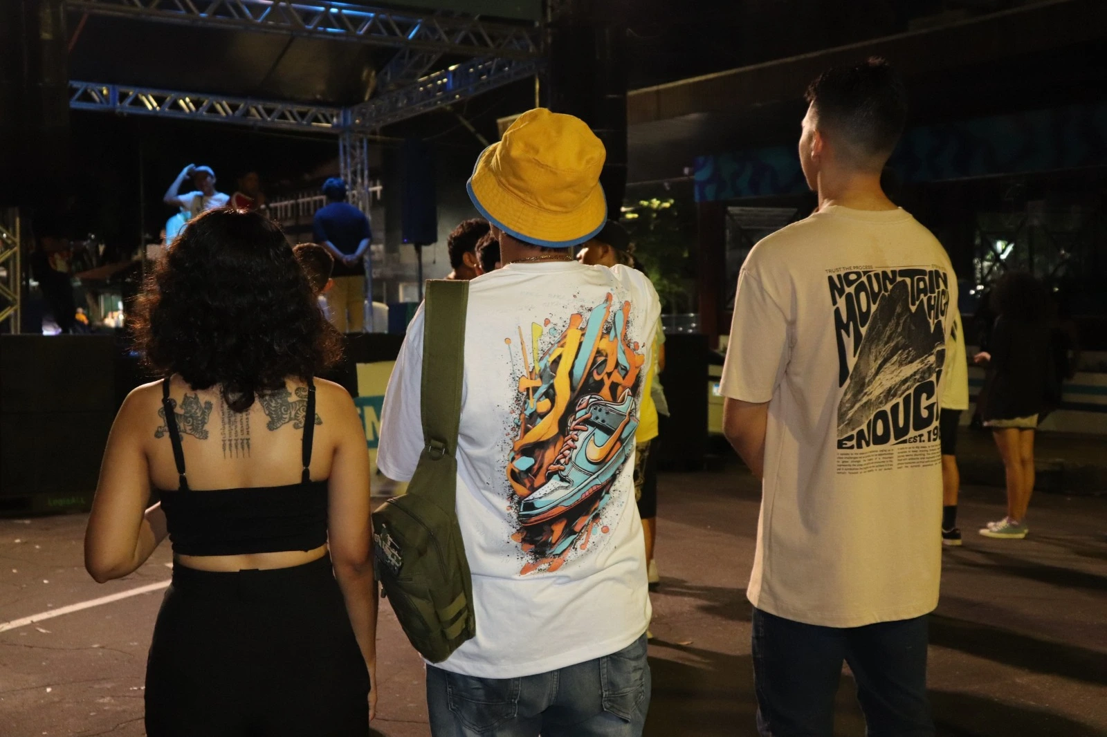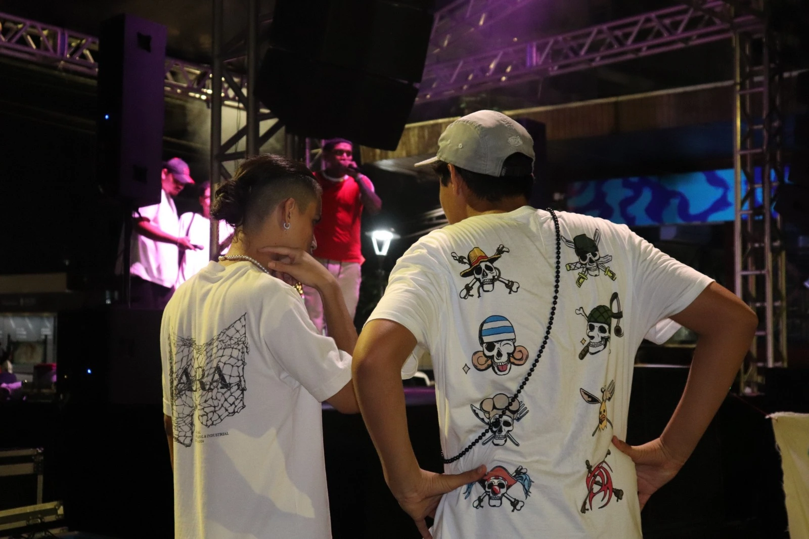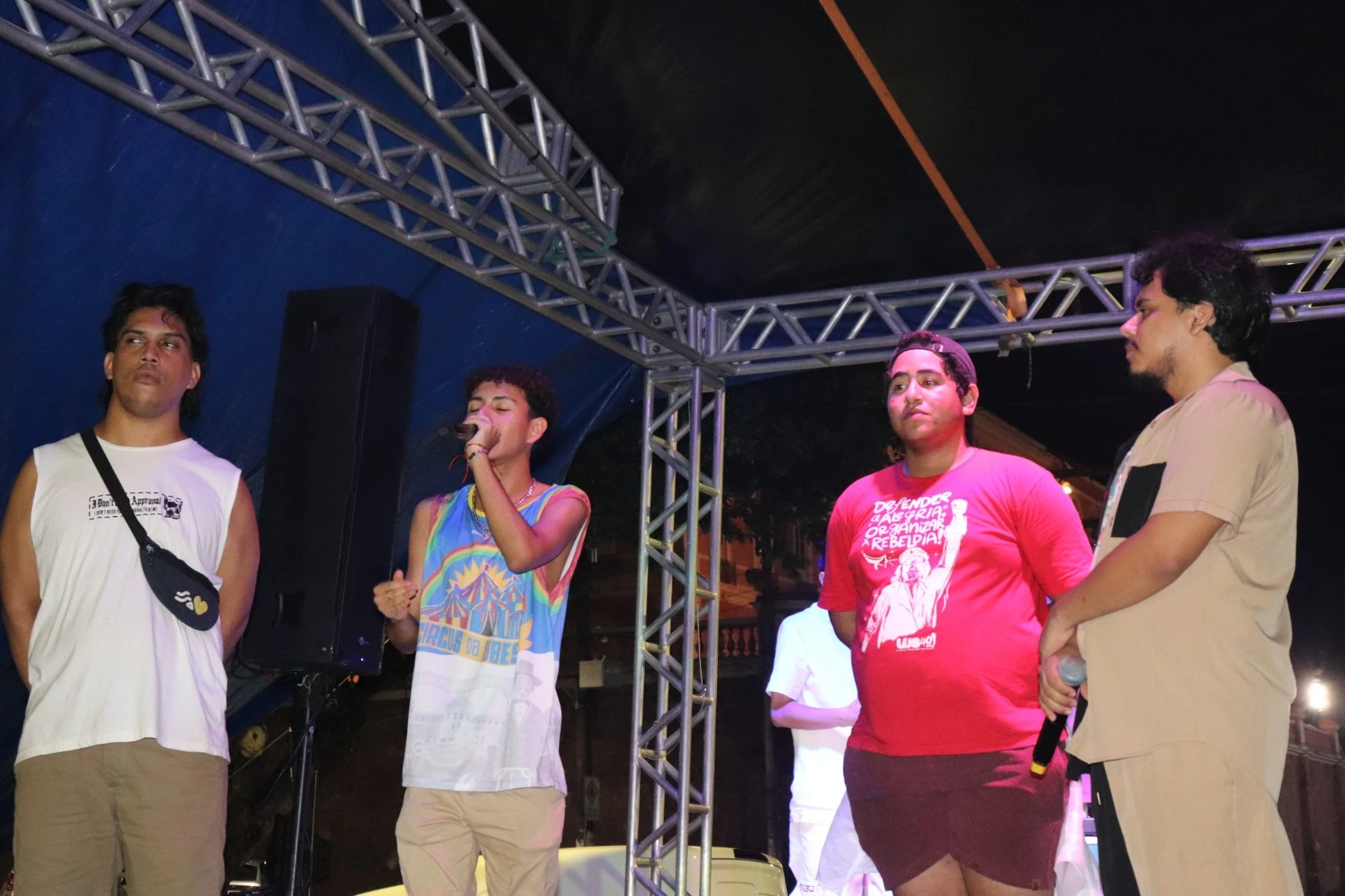 No comando do som, os DJs LF, Rani, Maggah, Guz, Markito e Mano Fé garantiram a batida. Nauj Jama trouxe seu flow cheio de ginga e palavra, com LF na mesa. Sessão da West subiu no palco, o pessoal da Batalha do Passarinho movimentou a roda de rima e Leleo comandou o slam. A noite também contou com os mestres de cerimônia G13 e MC Bety e com o pocket show de Isa MC. Entre uma música e outra, intervenções políticas e ações de sustentabilidade reforçaram nosso compromisso com a justiça climática e social.
