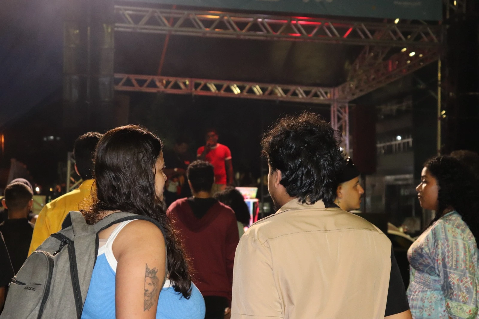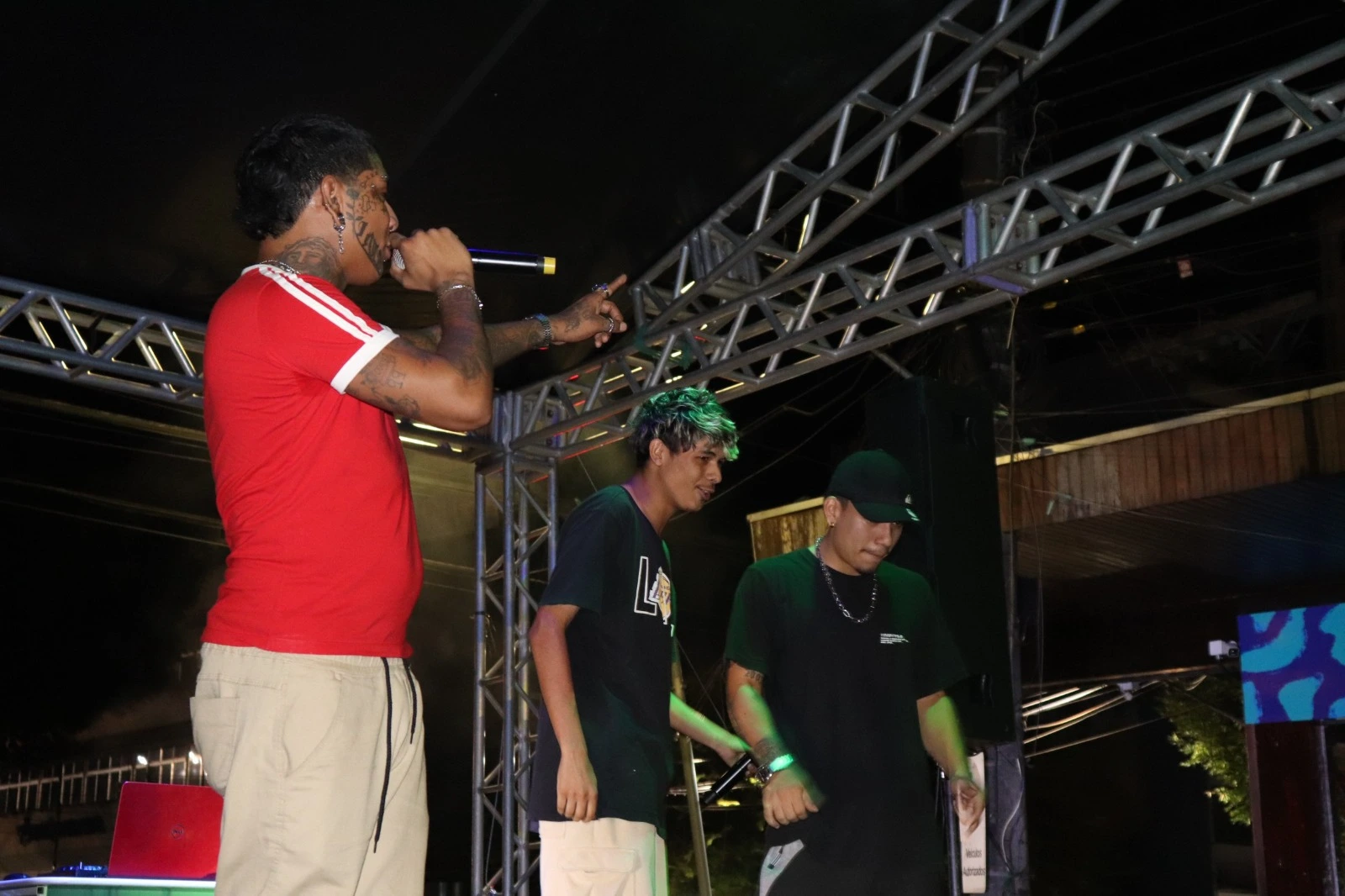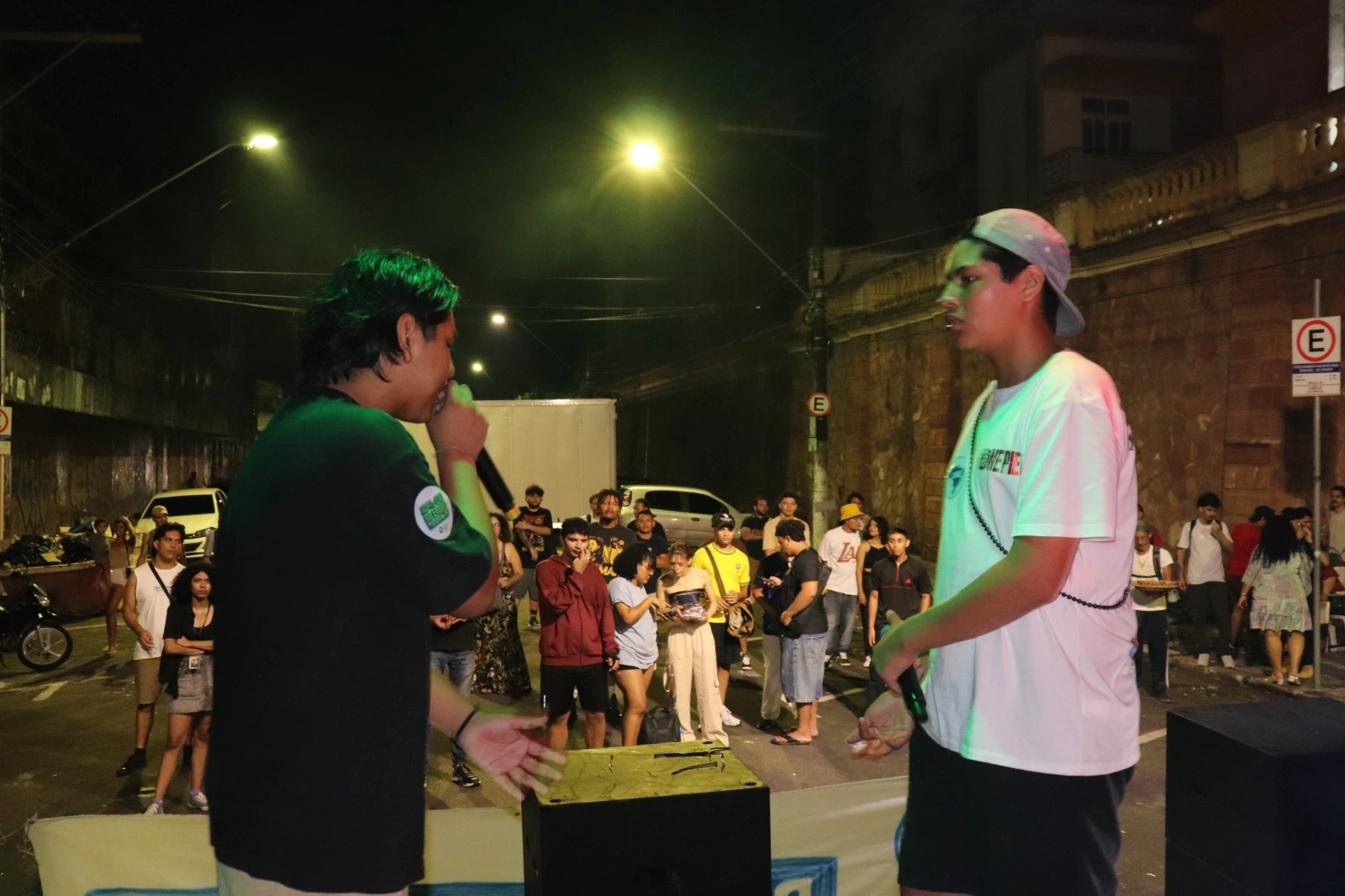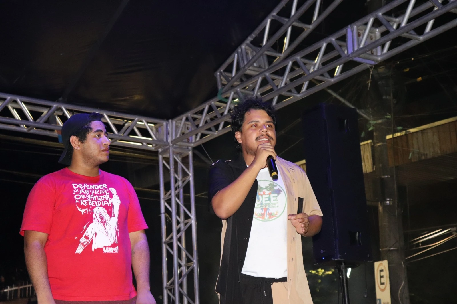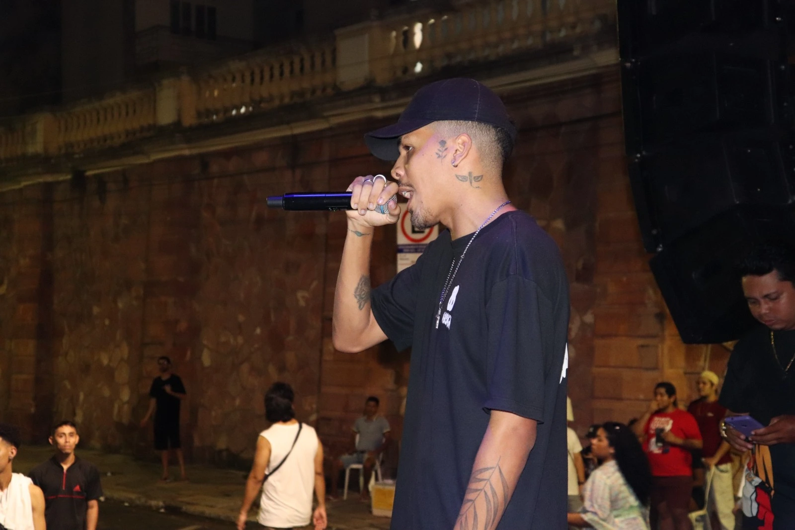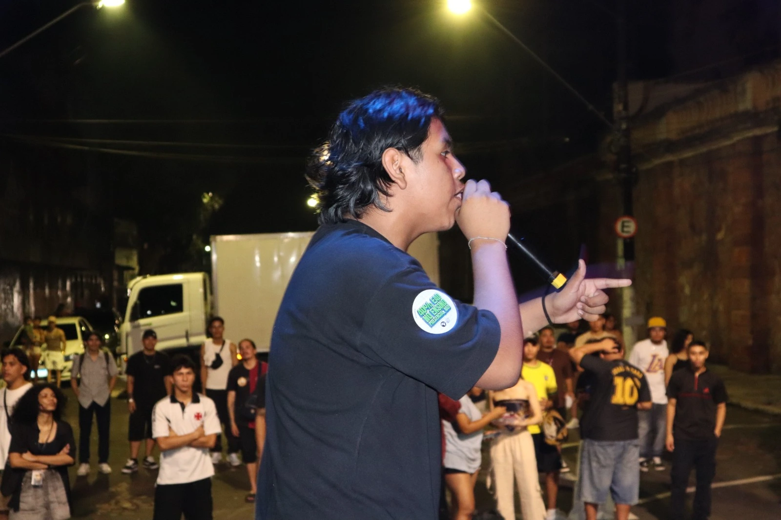 No comando do som, os DJs LF, Rani, Maggah, Guz, Markito e Mano Fé garantiram a batida. Nauj Jama trouxe seu flow cheio de ginga e palavra, com LF na mesa. Sessão da West subiu no palco, o pessoal da Batalha do Passarinho movimentou a roda de rima e Leleo comandou o slam. A noite também contou com os mestres de cerimônia G13 e MC Bety e com o pocket show de Isa MC. Entre uma música e outra, intervenções políticas e ações de sustentabilidade reforçaram nosso compromisso com a justiça climática e social.