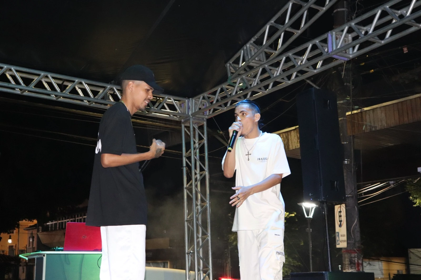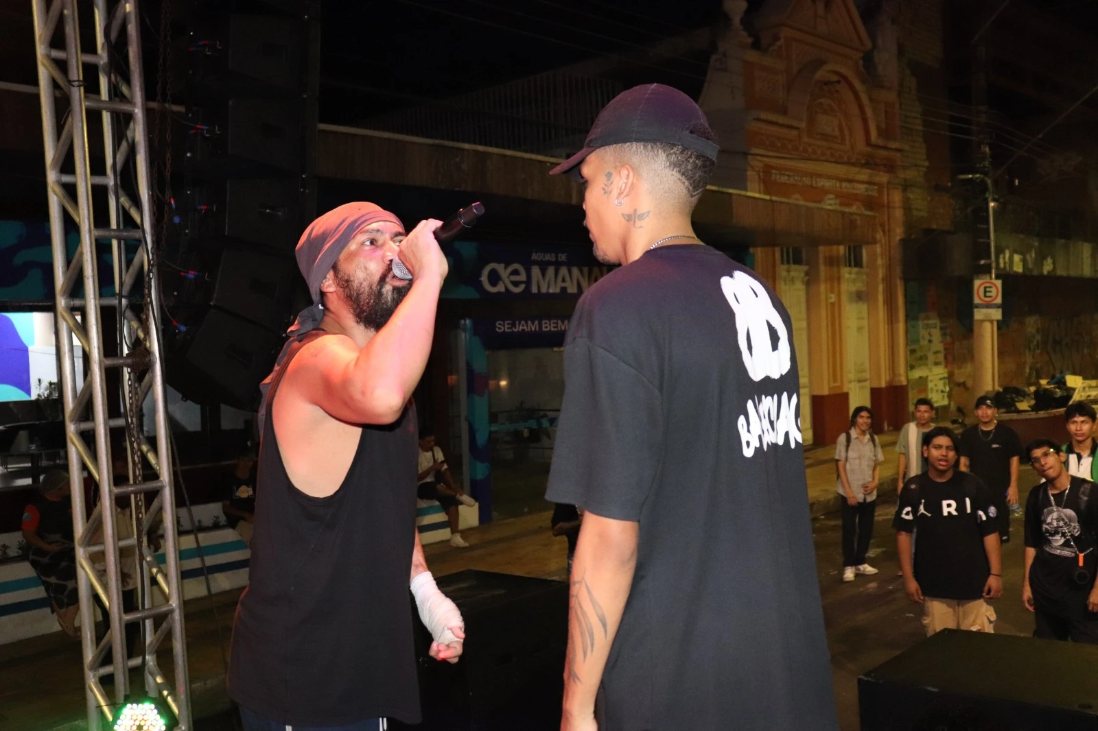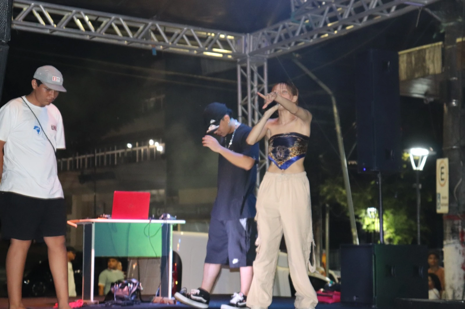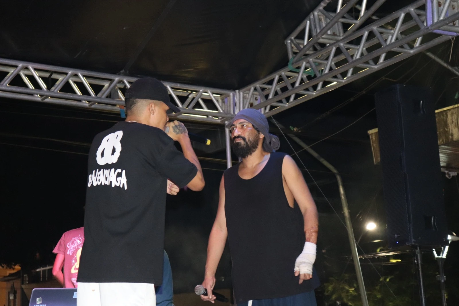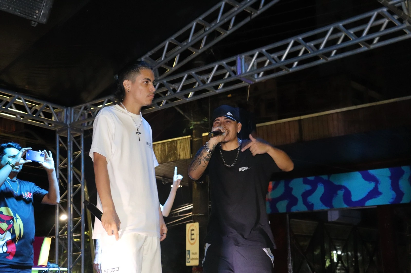 No comando do som, os DJs LF, Rani, Maggah, Guz, Markito e Mano Fé garantiram a batida. Nauj Jama trouxe seu flow cheio de ginga e palavra, com LF na mesa. Sessão da West subiu no palco, o pessoal da Batalha do Passarinho movimentou a roda de rima e Leleo comandou o slam. A noite também contou com os mestres de cerimônia G13 e MC Bety e com o pocket show de Isa MC. Entre uma música e outra, intervenções políticas e ações de sustentabilidade reforçaram nosso compromisso com a justiça climática e social.