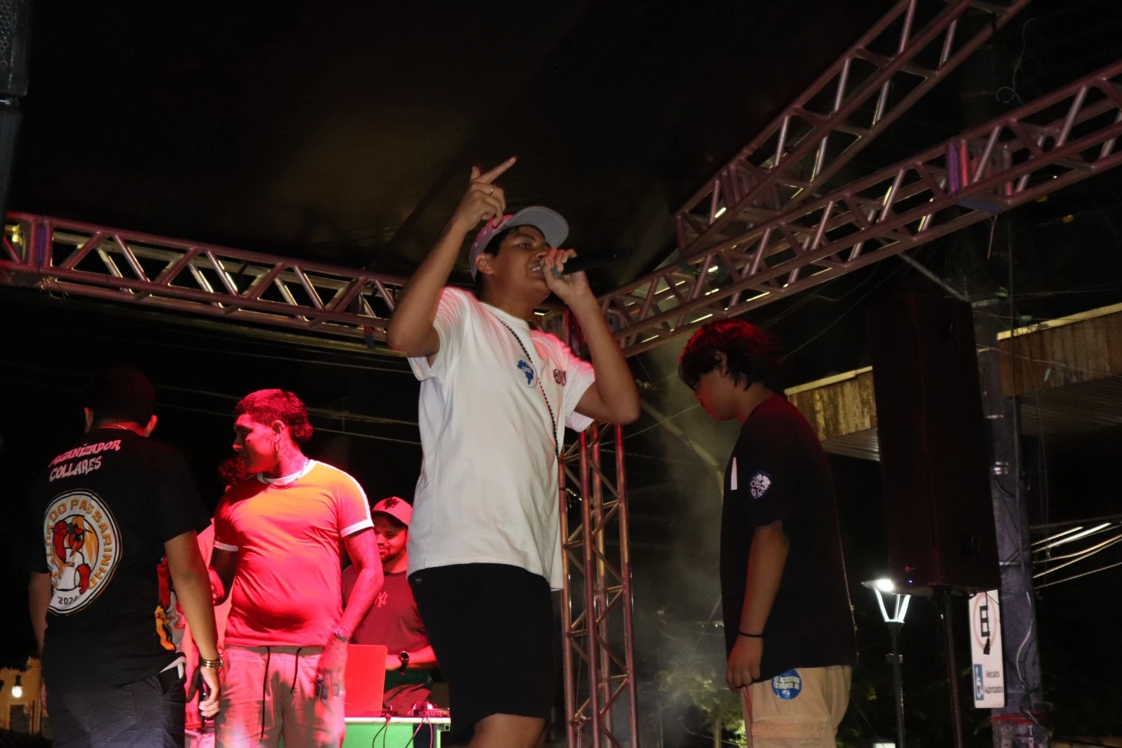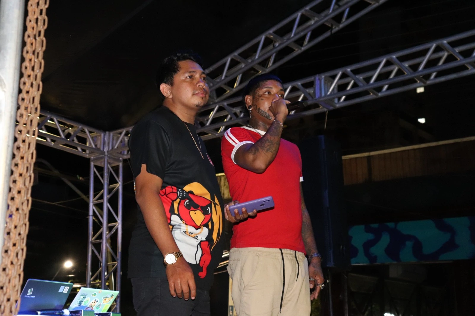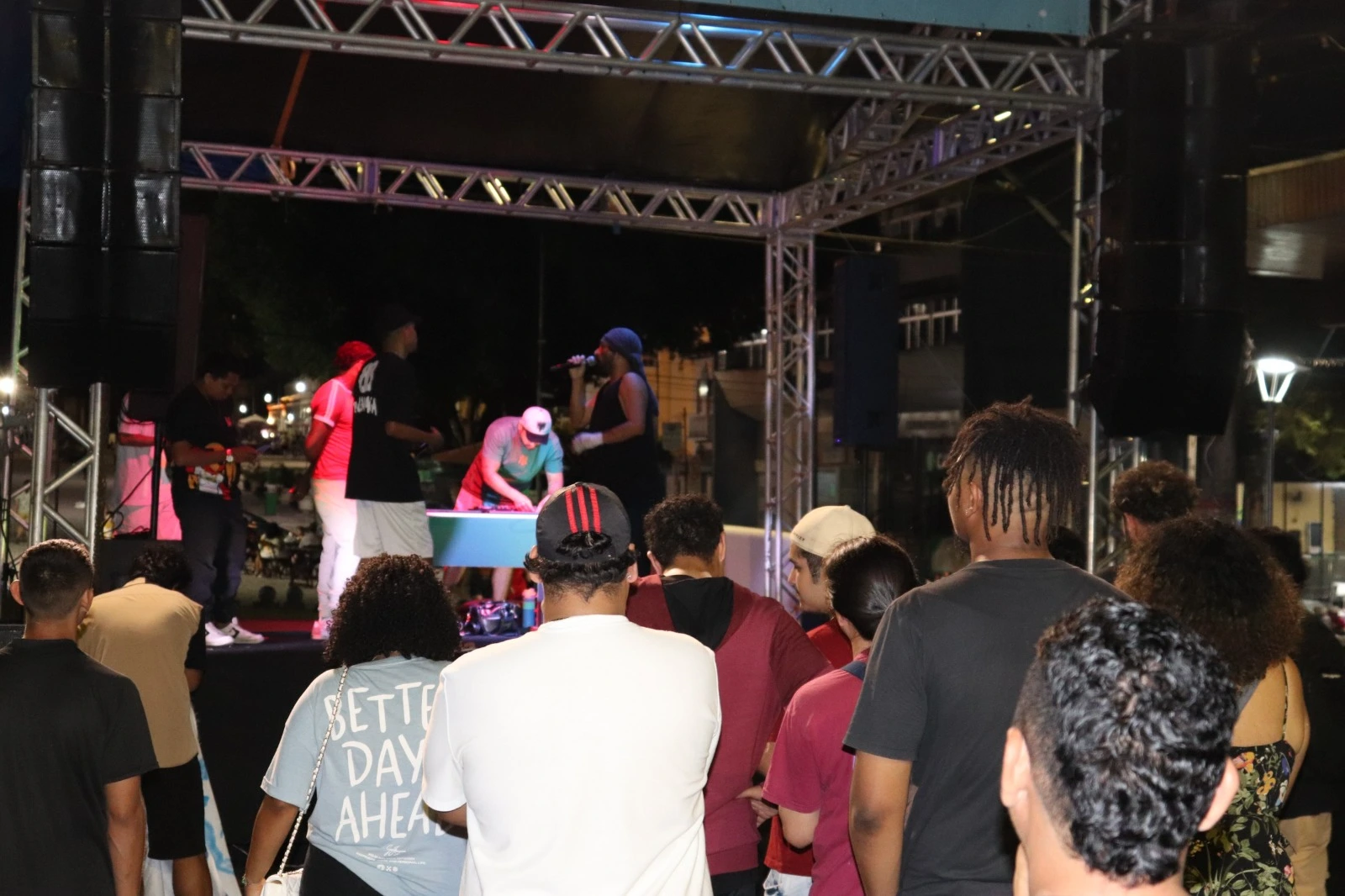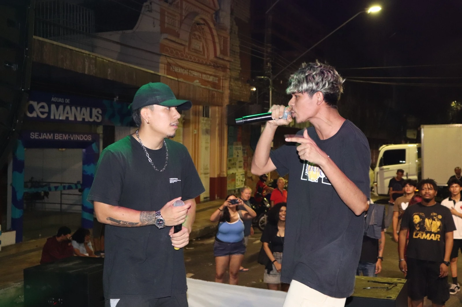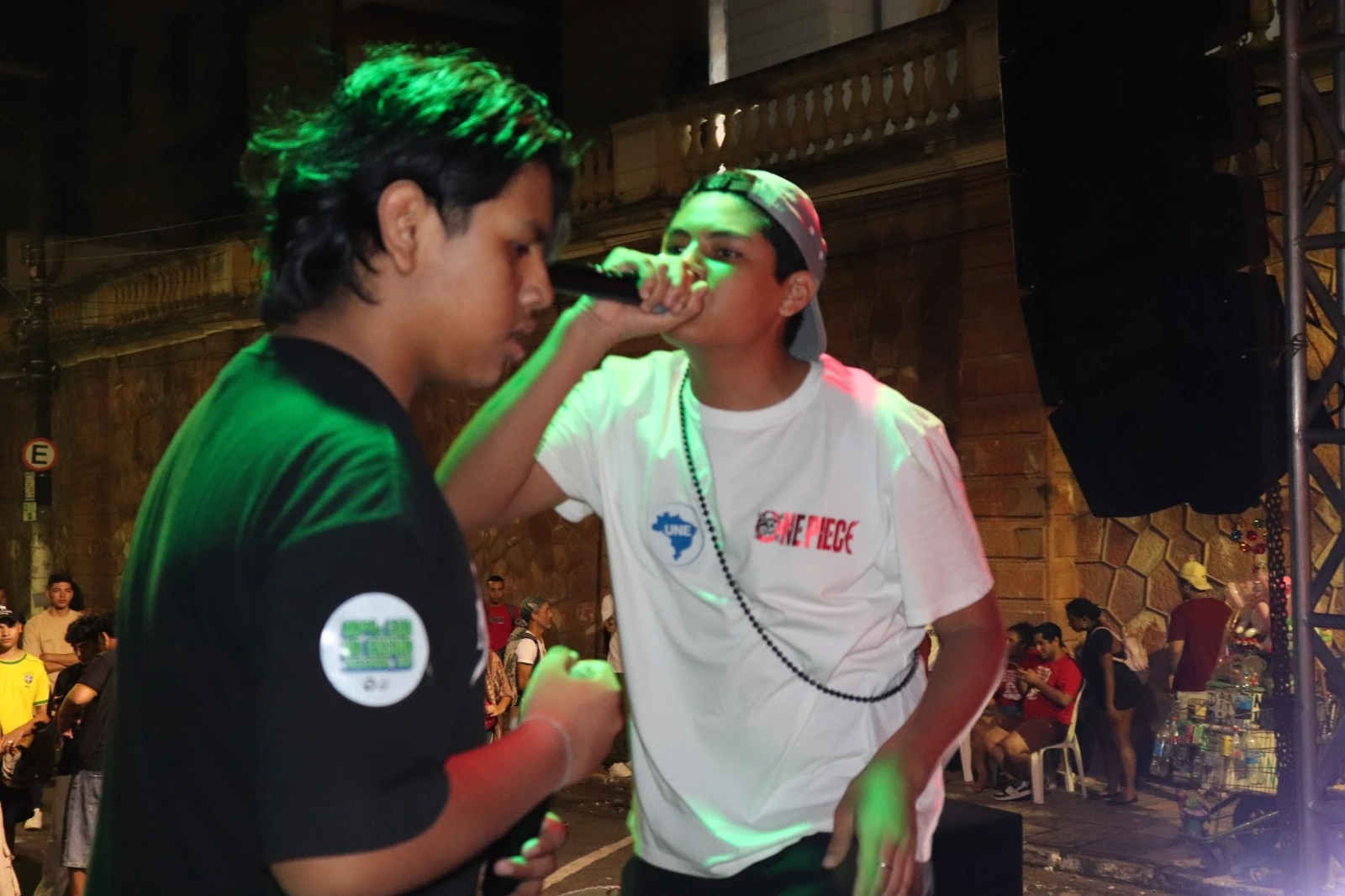 No comando do som, os DJs LF, Rani, Maggah, Guz, Markito e Mano Fé garantiram a batida. Nauj Jama trouxe seu flow cheio de ginga e palavra, com LF na mesa. Sessão da West subiu no palco, o pessoal da Batalha do Passarinho movimentou a roda de rima e Leleo comandou o slam. A noite também contou com os mestres de cerimônia G13 e MC Bety e com o pocket show de Isa MC. Entre uma música e outra, intervenções políticas e ações de sustentabilidade reforçaram nosso compromisso com a justiça climática e social.