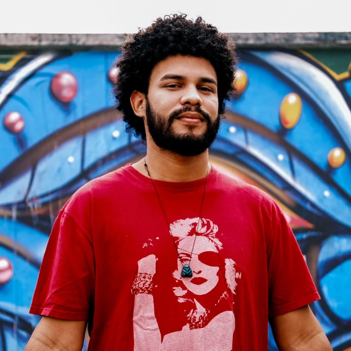 Educador social, músico, artista, bacharel em Serviço Social e estudante de Licenciatura em História, une formação e vivências para fortalecer identidades. Negro e LGBT, integra sua trajetória à missão do coletivo, conectando arte urbana, tradição popular e justiça social.